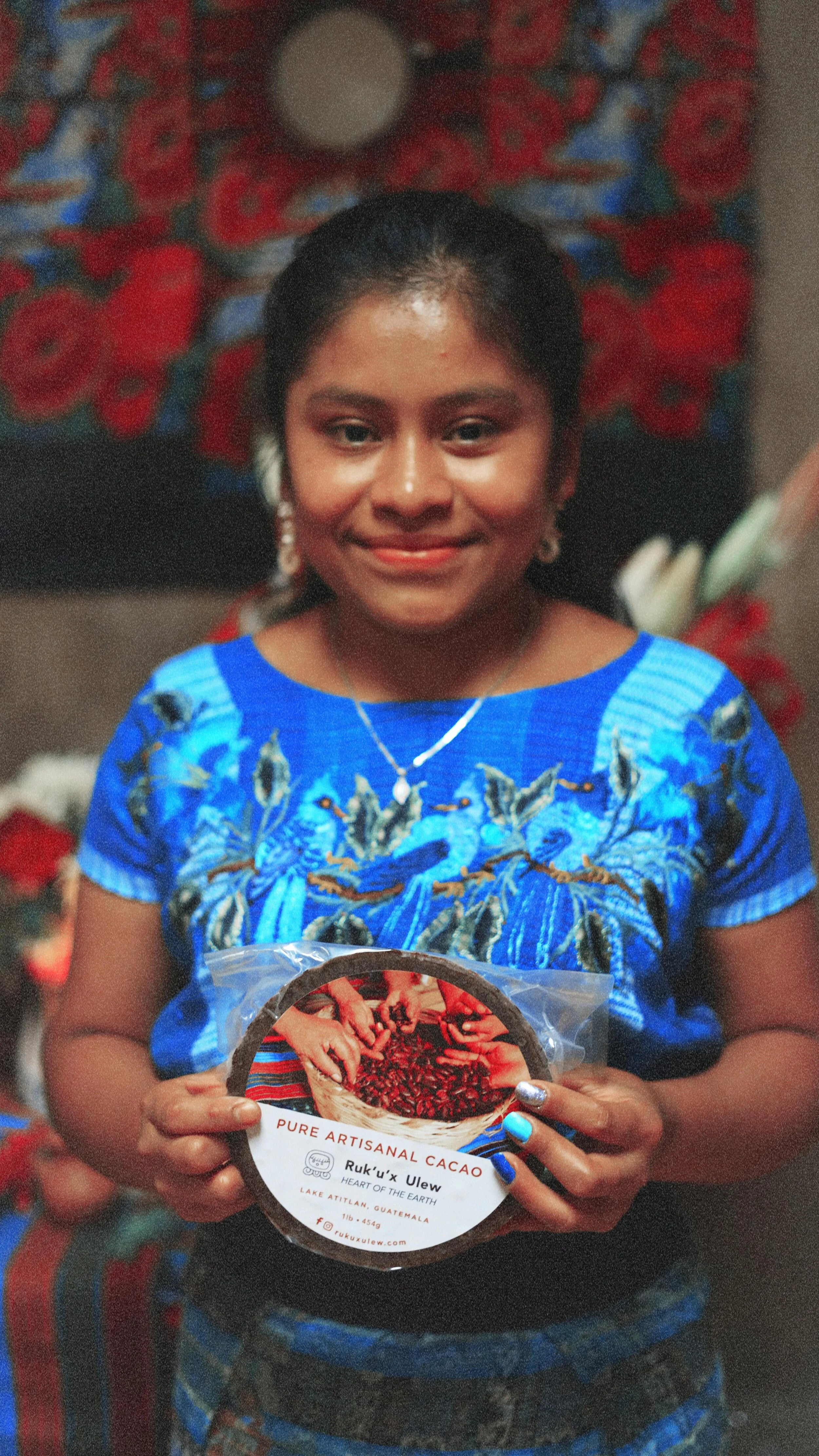 Cecilia was given the name Ruk'u'x Ulew [Roo-Koosh-Ouh-Leh-Ou] by the fire spirits as the name for her cacao business. It is a word from her native language, Kaqchikel , and translates as ‘Heart of The Earth’. She feels this not only honors her Mayan culture and ancestry but also relays her belief that cacao is a divine representation of the ‘Heart of The Earth.’